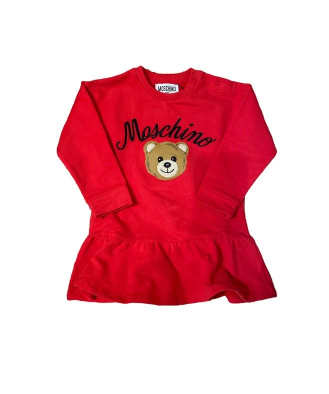 Abito Rosso con Logo, occhi, bocca e orecchie ricamati Moschino