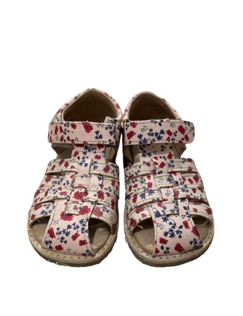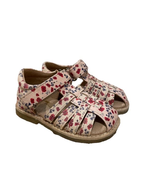 Sandalo rosa con fantasia floreale rossa e viola con chiusura a strappo