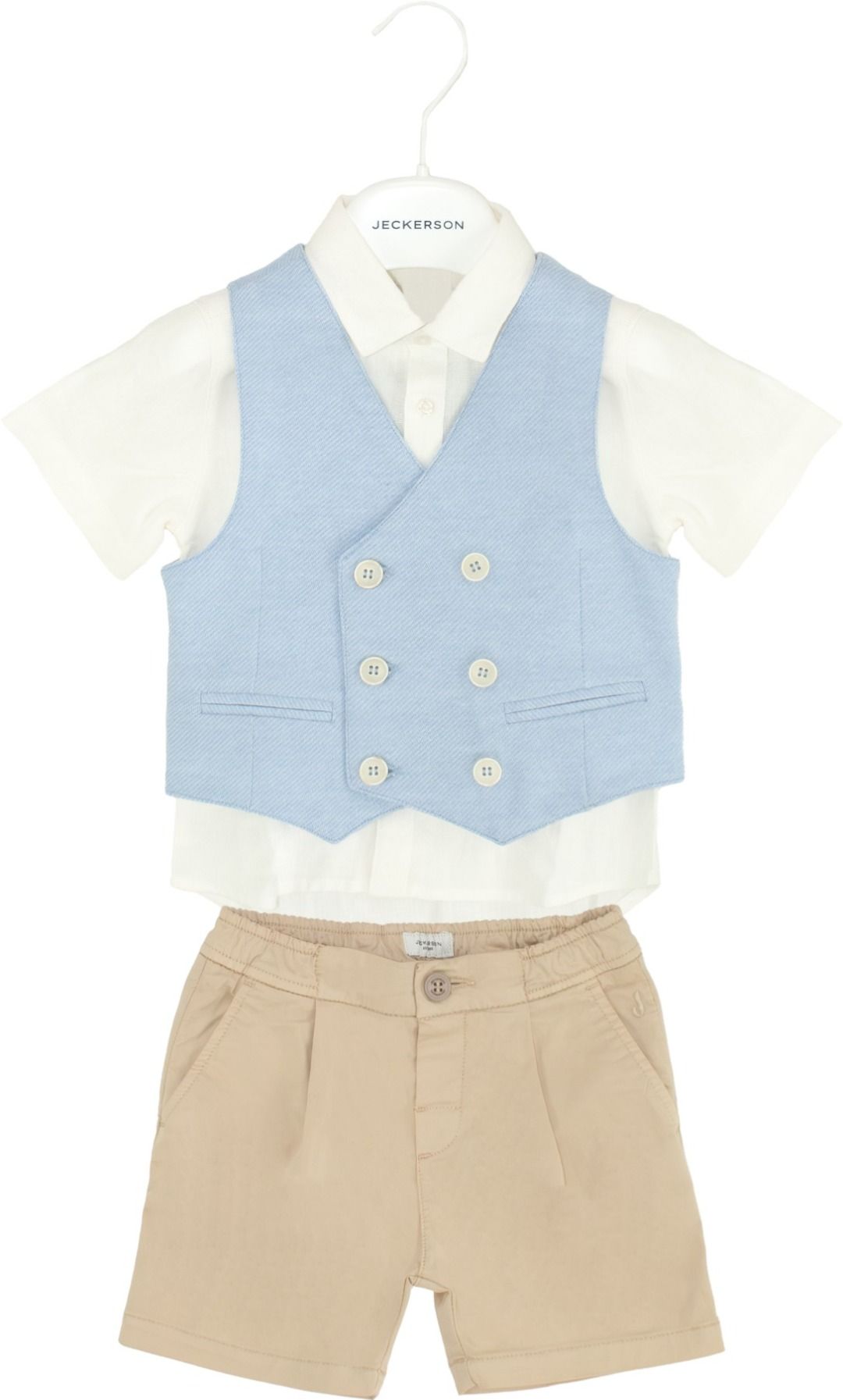 Completo 3 pezzi gilet, camiciotto, bermuda beige