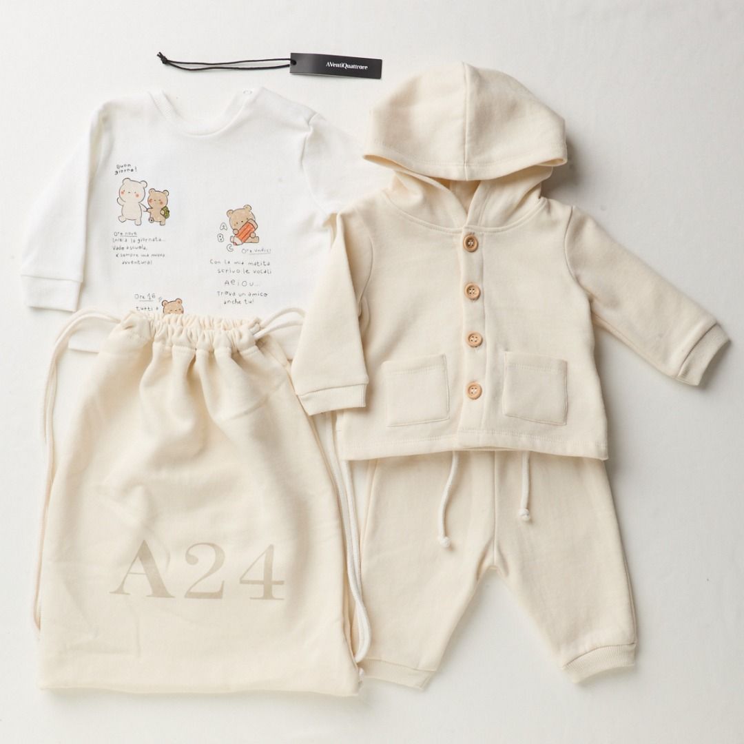 Tuta con sacca beige 100% cotone unisex.