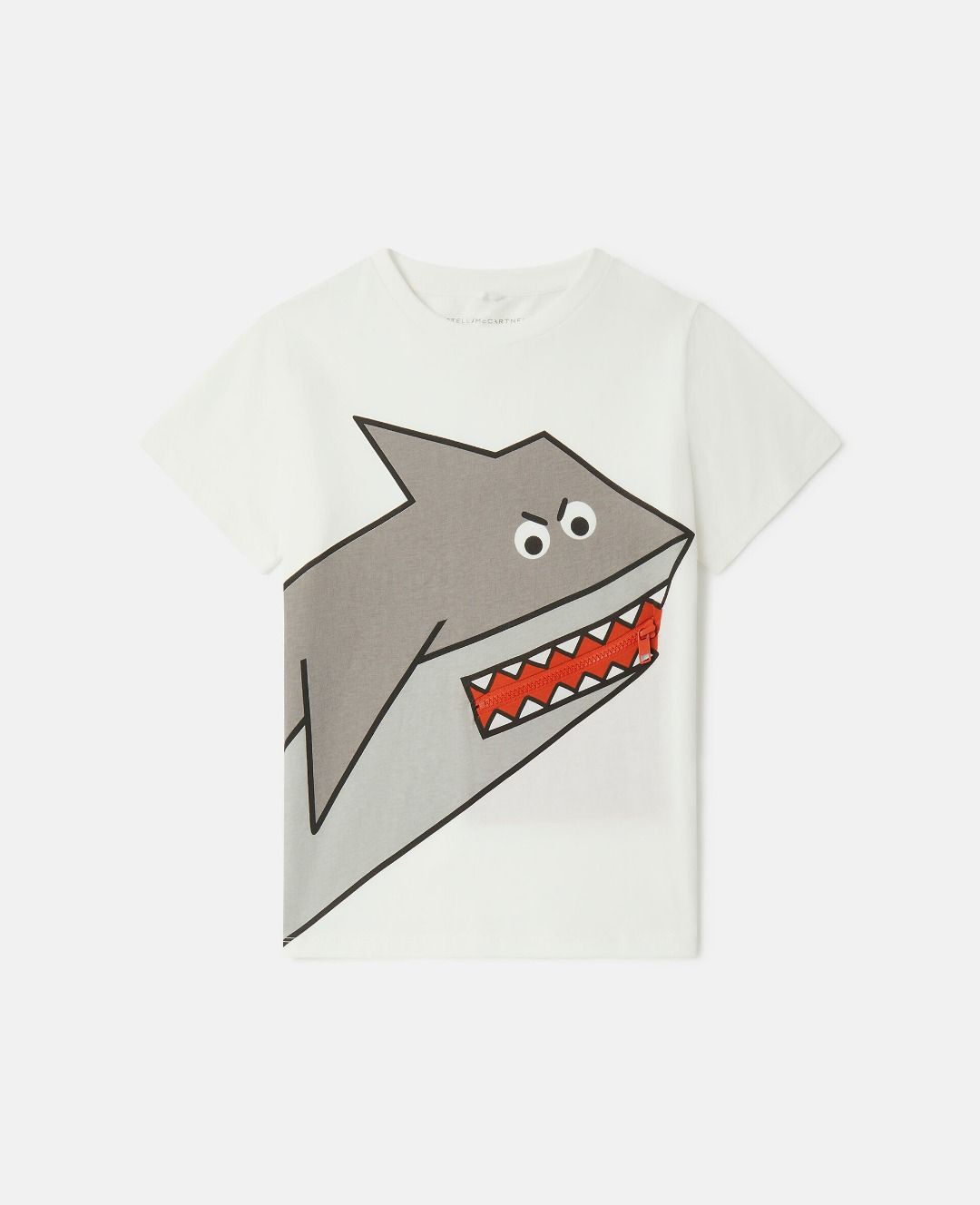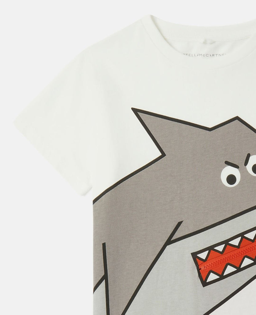 Questa t-shirt avorio di Stella McCartney Kids presenta un motivo a forma di squalo sul davanti. La t-shirt è realizzata in jersey di cotone biologico, più gentile con la Madre Terra.