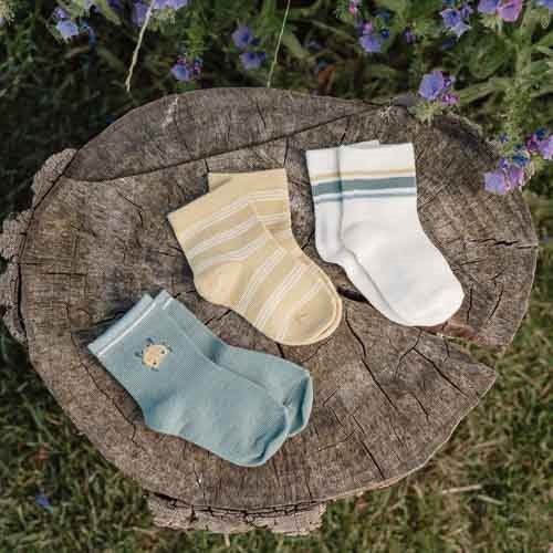 Completa il tuo outfit fino alle dita dei piedi! Questi dolci calzini ti porteranno in qualsiasi avventura tu possa immaginare. Scegli il tuo paio preferito. Ci sono tre stili diversi per completare il tuo outfit. Un paio verde con un simpatico insetto, un paio a righe gialle e bianche e un paio sportivo bianco. I calzini sono realizzati in morbido cotone biologico e disponibili nelle taglie 17 - 19, 20 - 22 e 23 - 26. Abbinalo a tutti i pezzi della collezione coordinata Forest Friends.