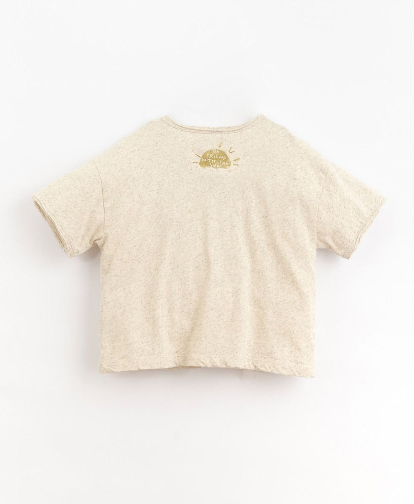 • T-Shirt di maglina, misto cotone organico e canapa, colore Skin. Modello con collo rotondo, una tasca sul davanti, un disegno sulla schiena e dettaglio finiture di taglio vivo. Le fibre organiche utilizzate in questo capo sono certificate GOTS (Global Organic Textile Standard), uno degli standard più importanti dell'industria tessile che stabilisce criteri rigorosi per i principi sociali, ambientali e di sicurezza sul lavoro lungo tutta la catena di produzione. Questo indumento offre un'ulteriore protezione anti-UV per consentire ai bambini di prendere il sole in modo più sicuro.
