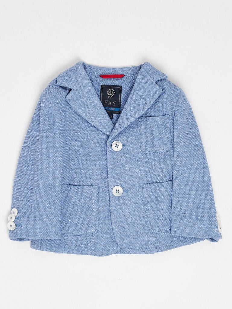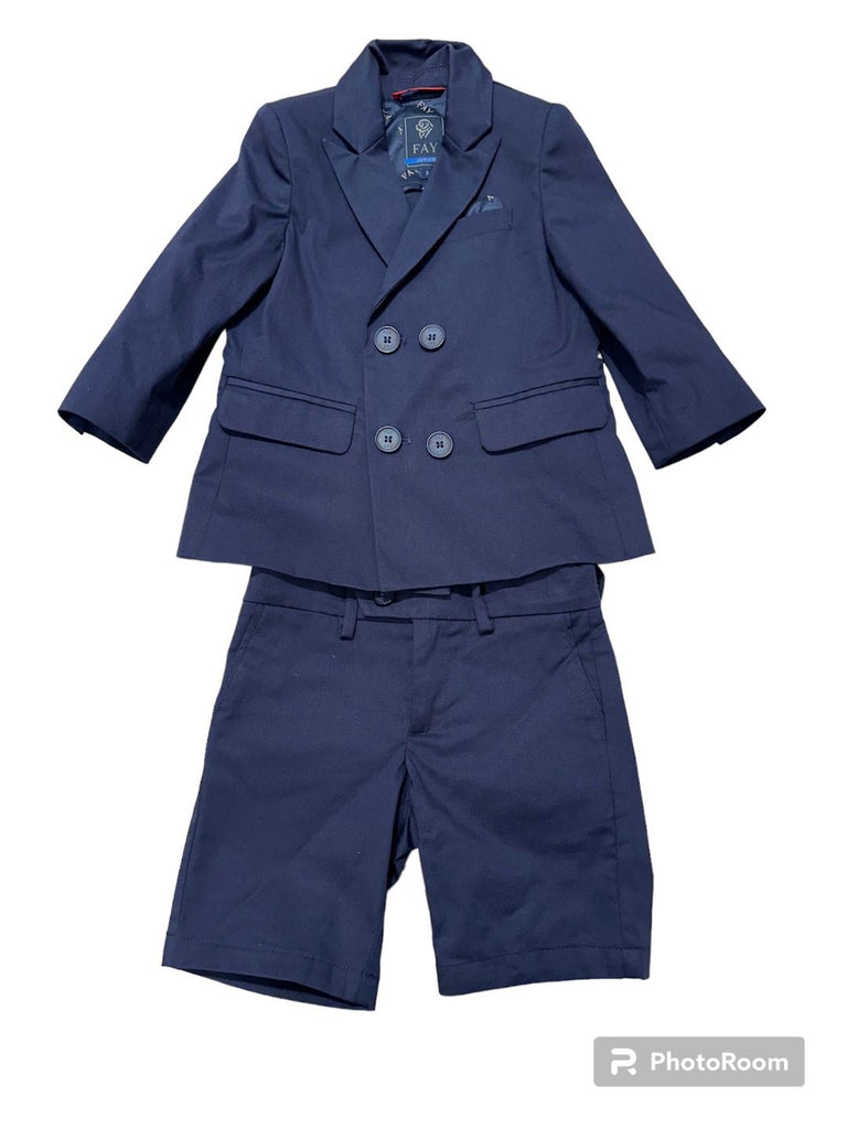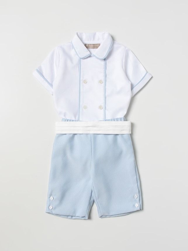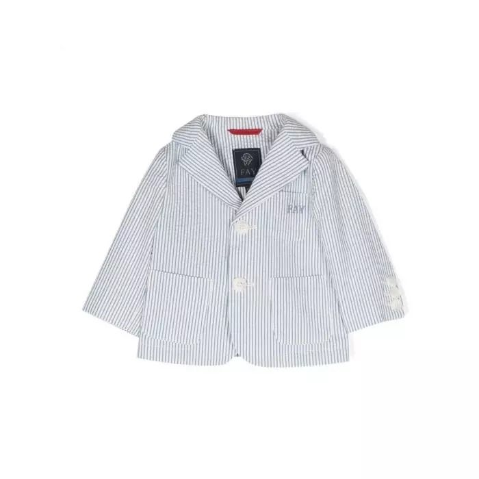 Completo giacca e bermuda a righe bianco e azzurro Per Te
