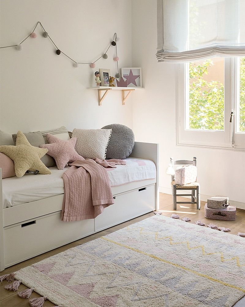 Lorena Canals Tappeto Lavabile Azteca, Panna/Rosa Vintage, 100% Cotone (140x200 cm)