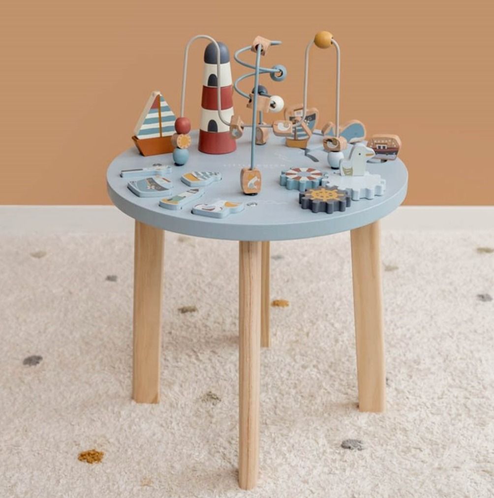 Alzati per giocare! Scoprite tutte le numerose attività che questo tavolo ha da offrire. Aiutate le farfalle a portare le perline lungo la spirale. Oppure costruisci una torre di fiori. Completate il puzzle, girate le ruote e attraversate i campi di fiori con il coniglietto, il bruco o la coccinella. Questo tavolo multiattività in legno mette alla prova il vostro piccolo in molti modi. Ci sono 5 attività da esplorare che supportano lo sviluppo della motricità fine. Grazie al design sicuro e bilanciato, il tavolo delle attività incoraggia anche a stare in piedi. E a rimanere in piedi! Perché le numerose funzioni terranno impegnato il vostro bambino per un po' di tempo.