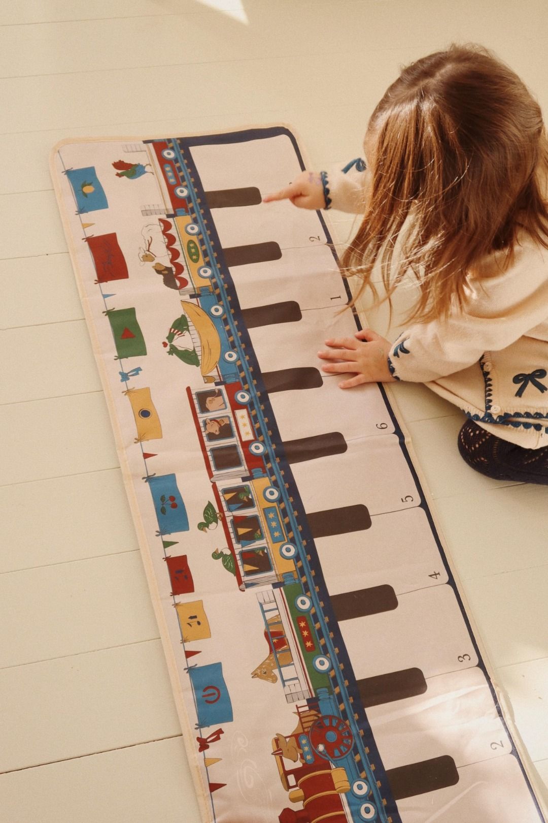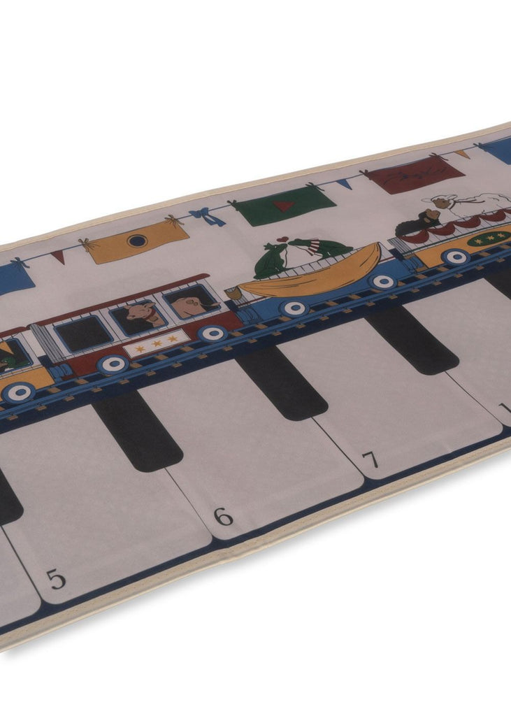 'coperta' musicale da posizionare sul pavimento. Sali o premi i pulsanti per emettere suoni. Include i classici suoni del pianoforte quando si premono i tasti, oltre a diverse melodie demo, giochi di apprendimento dell'interazione con nomi e suoni di animali e un pulsante di registrazione per salvare le proprie melodie. Realizzato in 100% poliestere con 100% ABS 3y+ ATTENZIONE! PERICOLO DI SOFFOCAMENTO. Piccole parti. Non adatto a bambini di età inferiore ai 36 mesi. Non utilizzare vicino all'orecchio! L'uso improprio può causare danni all'udito.