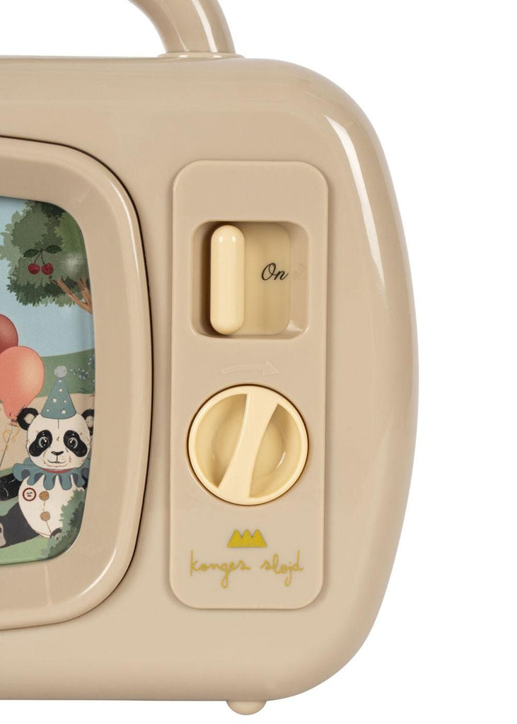 Dolce giocattolo televisivo musicale per i più piccoli. Attivare lo schermo in movimento ruotando il pulsante in senso antiorario. Le immagini sullo schermo seguiranno i suoni rilassanti. Nota: non sono necessarie batterie per far funzionare il giocattolo. Adatto da 18m+ ATTENZIONE! Non utilizzare vicino all'orecchio! L'uso improprio può causare danni all'udito.