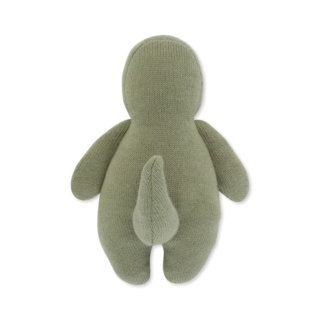 Mini dino realizzata in 100% cotone biologico con imbottitura in poliestere riciclato.