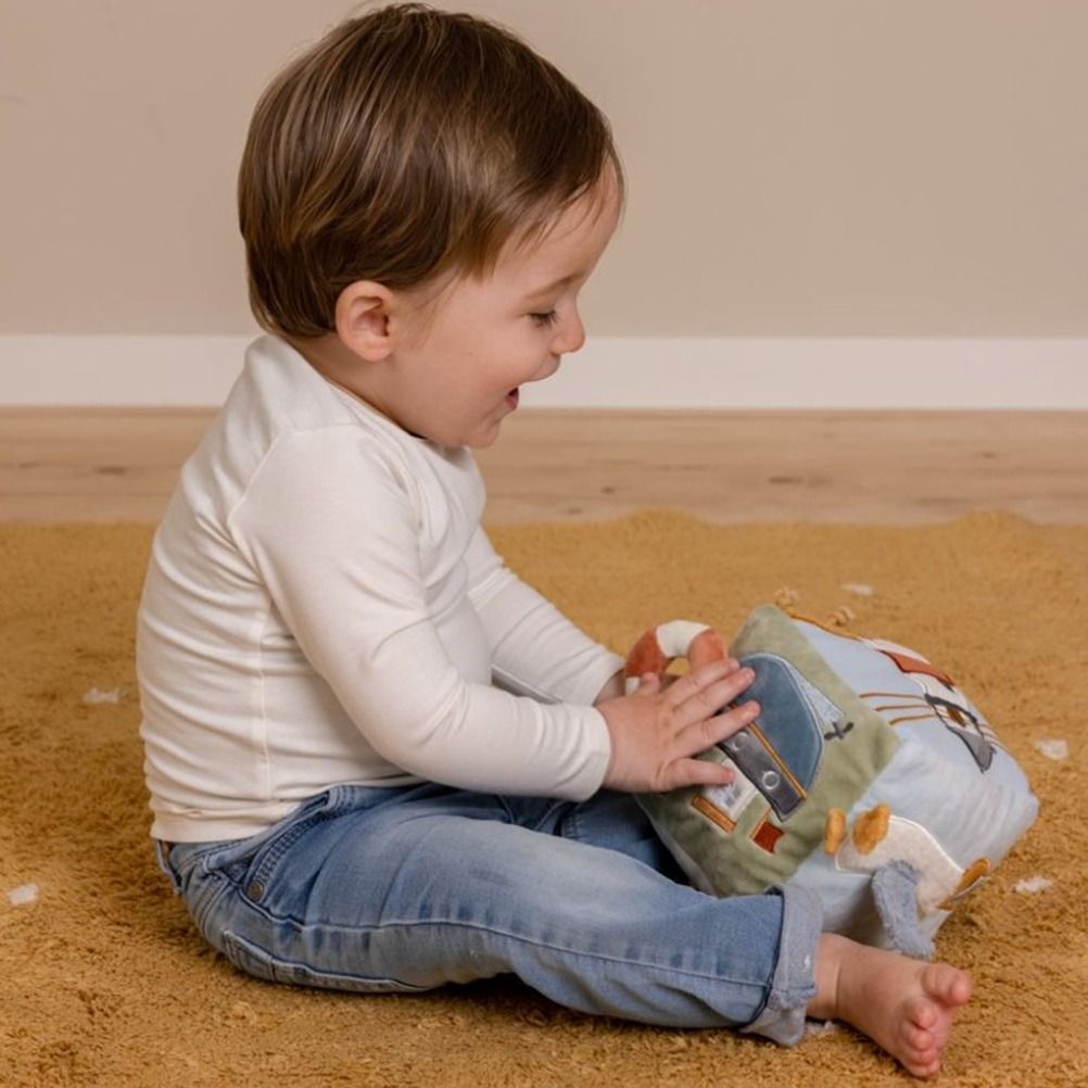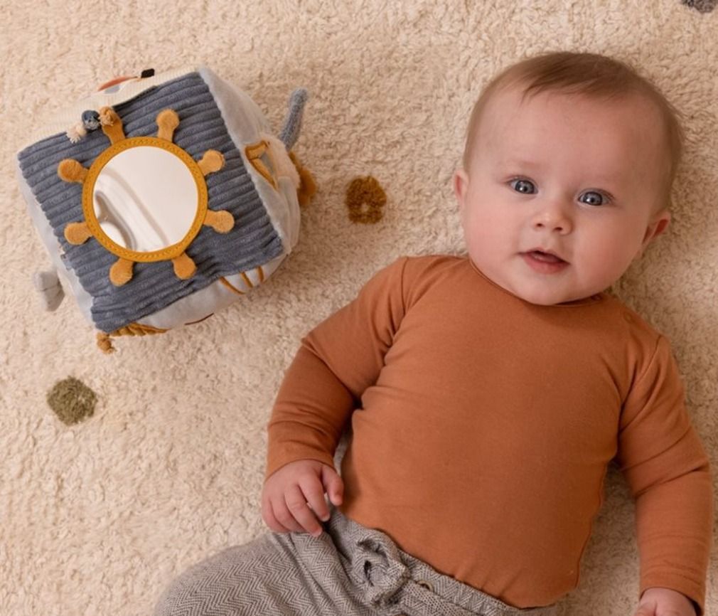 La vita intorno al faro. Una serie di texture, suoni e personaggi ispirati alla baia si uniscono in questo morbidissimo cubo attività. Ogni pannello offre un'attività diversa che stimola la coordinazione occhio-mano e terrà impegnato il bambino. Ci sono tante cose da afferrare e toccare, da un gabbiano impertinente con le zampe in corda di cotone e un pellicano con un pesce nel becco a uno specchio per scoprire se stessi.