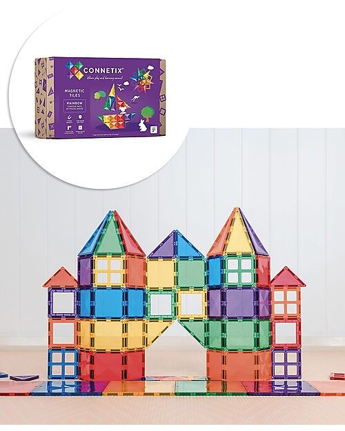 Connetix 60 Pezzi - Pacco Iniziale - Arcobaleno - 100% Plastica ABS Atossica - Apprendimento STEM!
