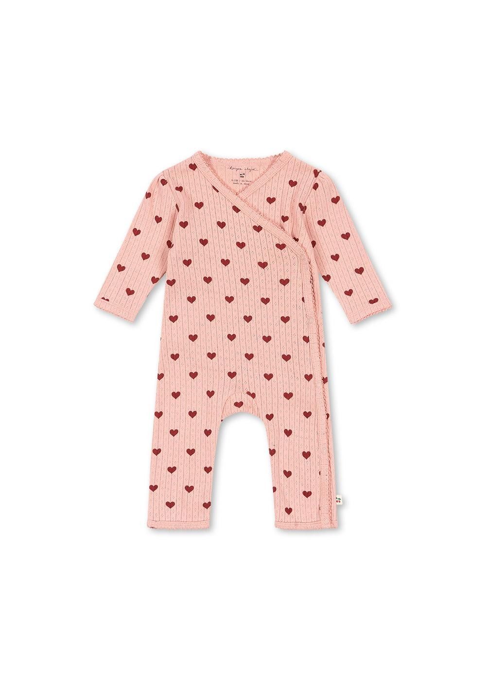 Morbida tutina per neonati con comoda chiusura a portafoglio per una facile vestizione. Presenta bottoni a pressione lungo il corpo e le gambe e motivo decorativo a punta. Realizzato in 100% cotone biologico. GOTS, Biologico, certificato da CU1094701.