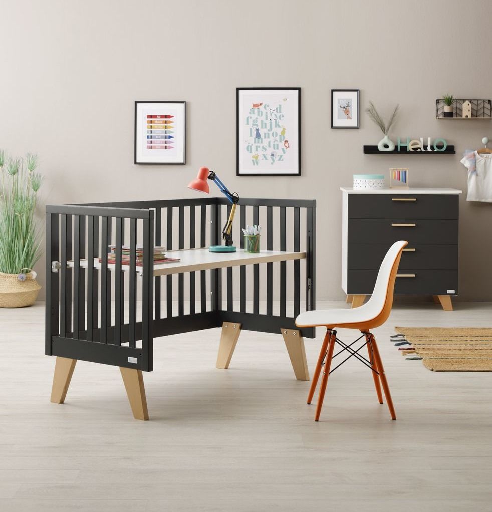 STOCCOLMA EVOLUTIVO è il nuovo lettino che in pochi passaggi si trasforma da culla a lettino ed infine in una solida ed utile scrivania.