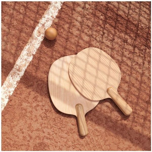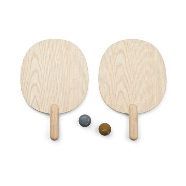 Ecco un bel set da tennis disegnato da Liewood. Ha due racchette in legno di quercia e due palline in gomma naturale in colori tenui che amiamo. Il set viene fornito in una graziosa sacchettina. Che il gioco abbia inizio...