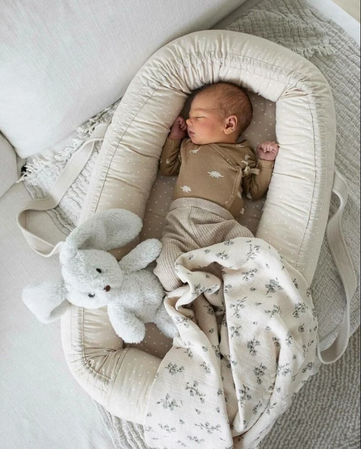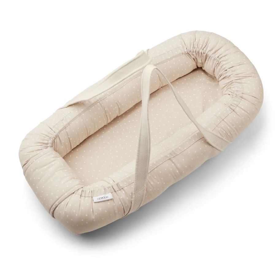 L'unione definitiva di un sollevatore per bambini e nido realizzato con maniglie per una facile trasportabilità. L'imbottitura, il materasso e la tavola di legno sono rimovibili, rendendo la fodera lavabile.