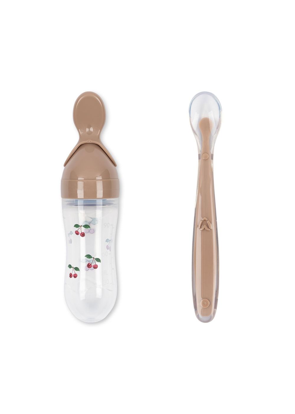Un set di alimentazione semplice e pratico per neonati realizzato con materiali sicuri per gli alimenti senza BPA. Basta riempire la bottiglia di silicone con purea di cibo e premere delicatamente fino ad avere la giusta quantità sul cucchiaio. Il cucchiaio è progettato ergonomicamente e facile da usare. L'alimentatore è dotato di un pratico coperchio per evitare perdite di cibo.
