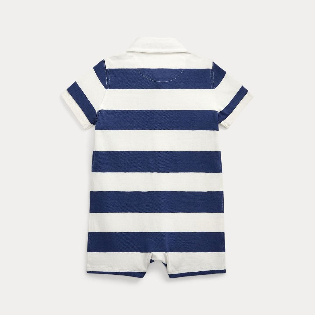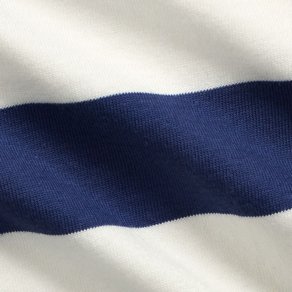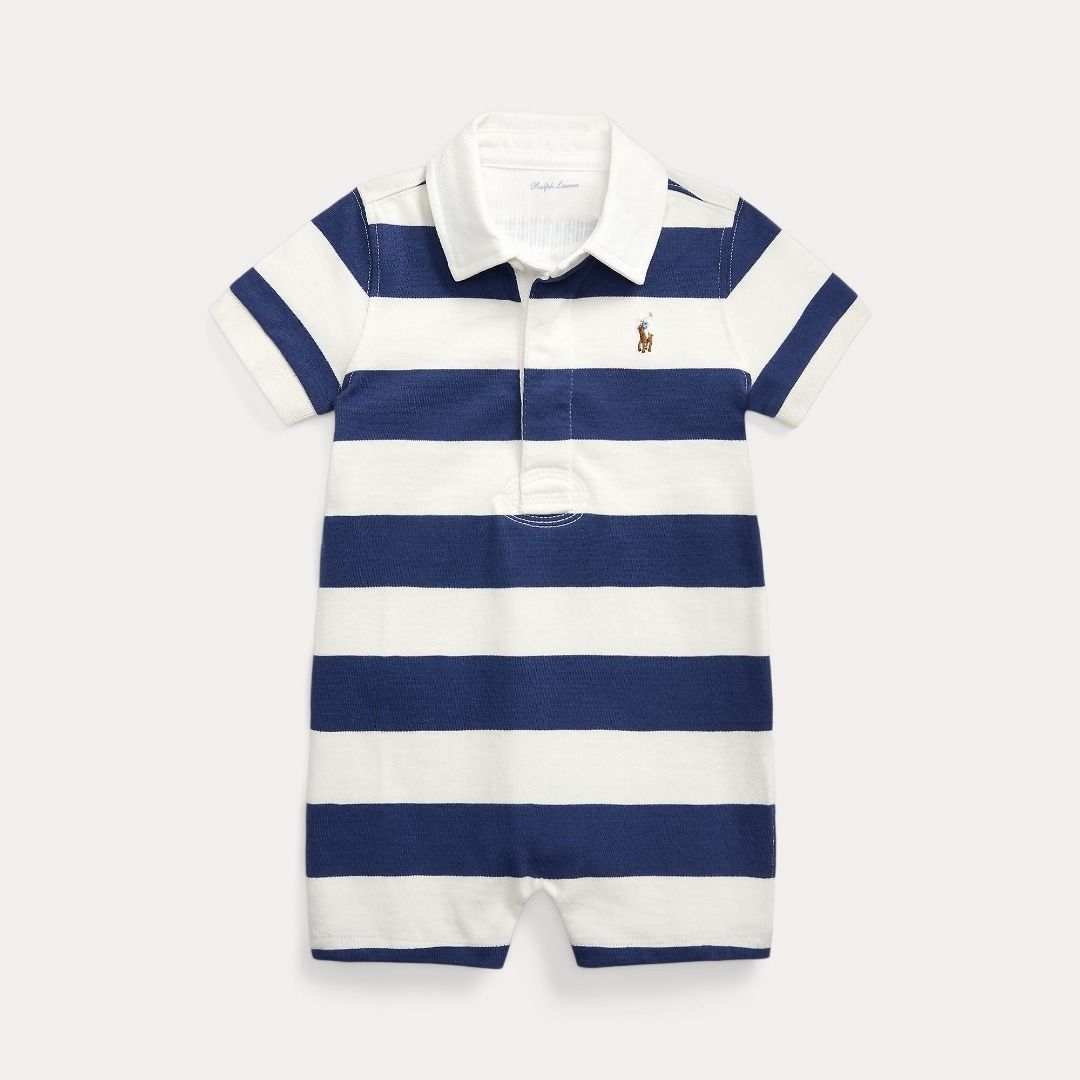 Caratterizzato da righe audaci, colletto in twill e bottoni rifiniti in gomma, questo costume intero in jersey prende spunto dalla nostra iconica maglia da rugby.