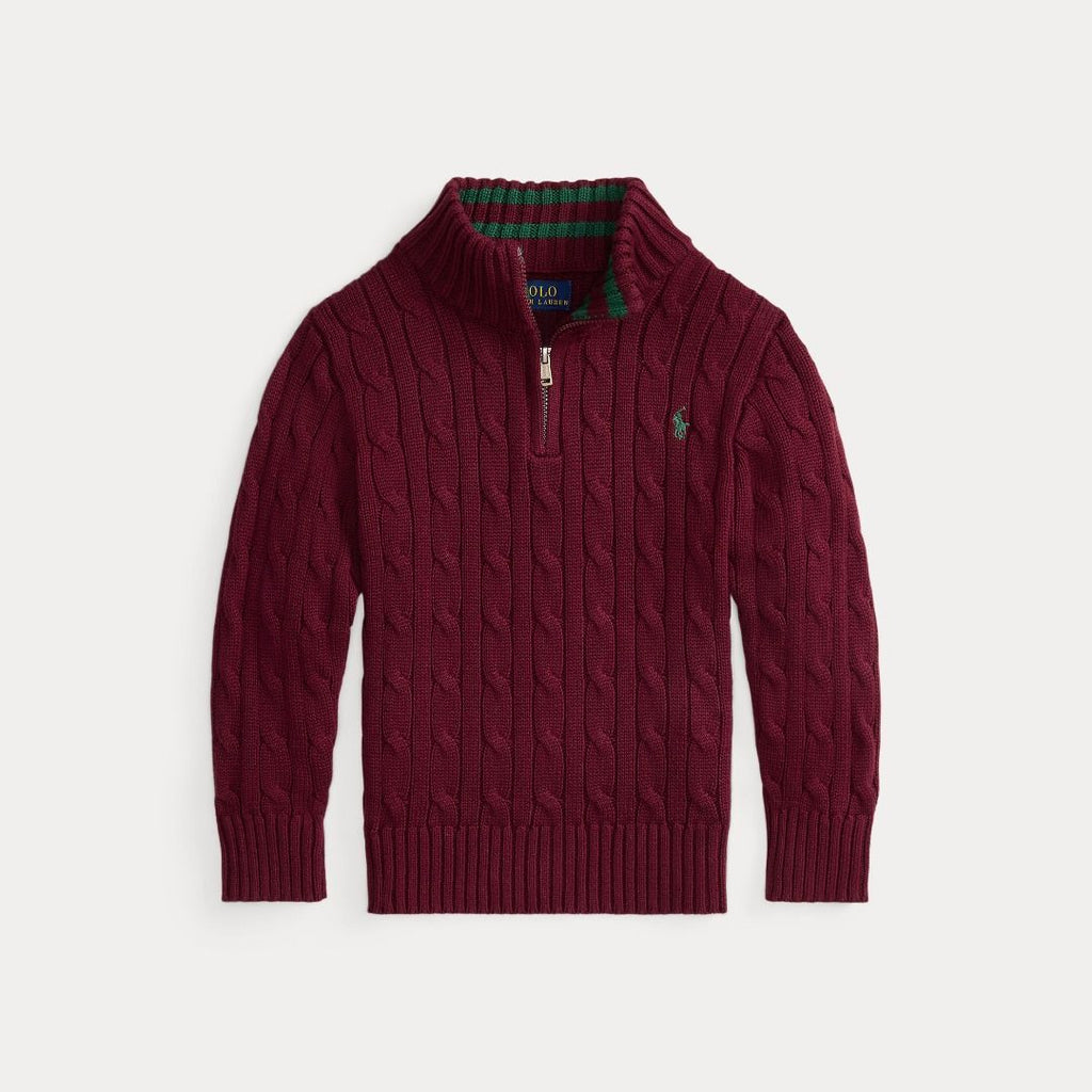 MAGLIA A TRECCE IN COTONE CON ZIP A UN QUARTO VINO CLASSICO