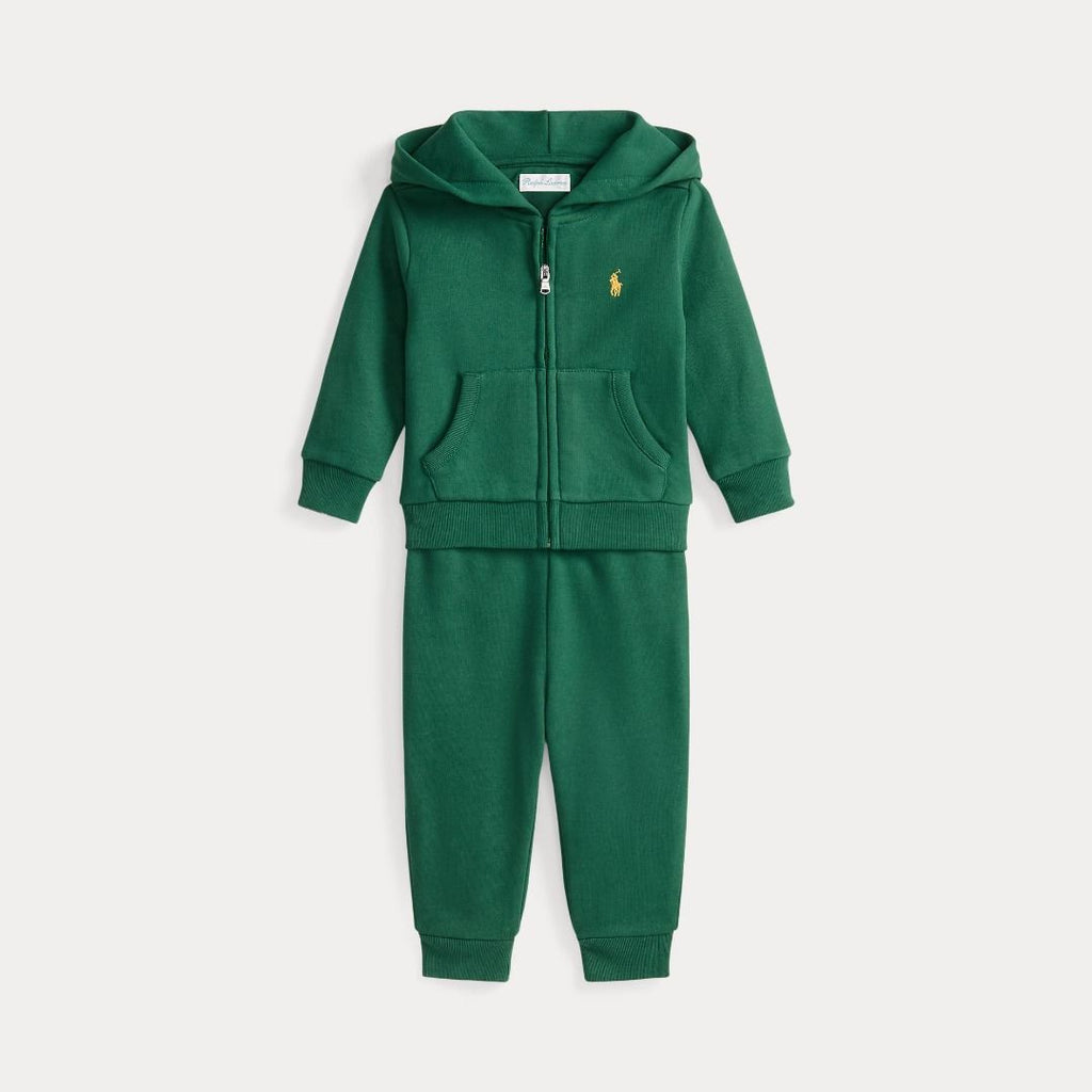 SET DI FELPA CON CAPPUCCIO E PANTALONI IN PILE CON ZIP INTERA KELLY VERDE