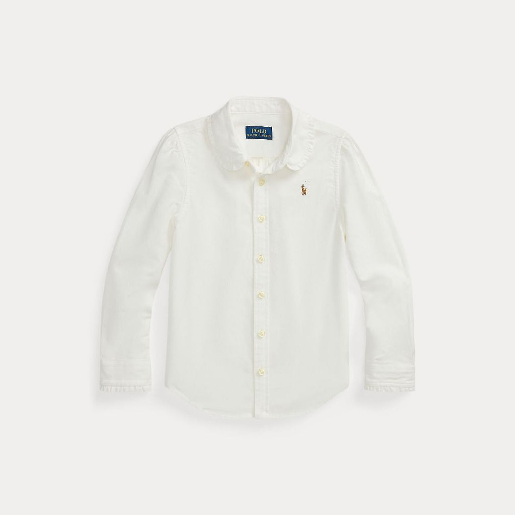 CAMICIA OXFORD IN COTONE CON VOLANT BIANCO