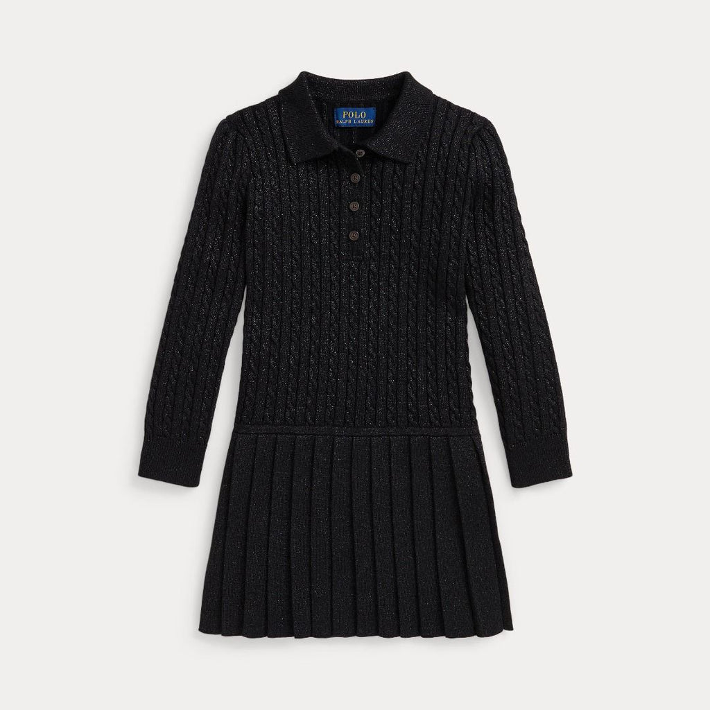 METALLIC MINI-CABLE POLO SWEATER DRESS POLO BLACK