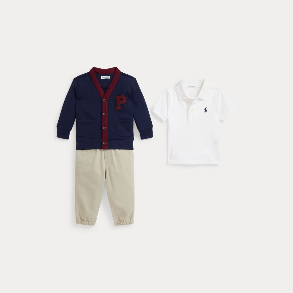 POLO SHIRT, CARDIGAN & CHINO PANT SET