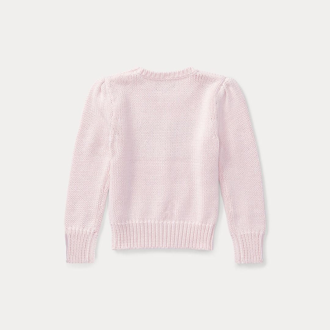 Con maniche a sbuffo e bandierina in maglia a intarsio, questo maglione ultramorbido è una rivisitazione giocosa di un'icona Polo e lo strato leggero perfetto.