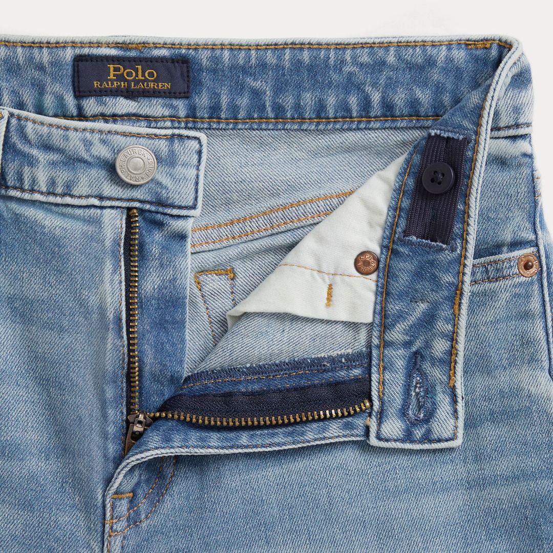 Questi jeans sono realizzati con denim di cotone leggero che ha un tocco di elasticità per un comfort aggiuntivo. Sono tagliate per una silhouette svasata e rifinite con la caratteristica ferramenta Polo.