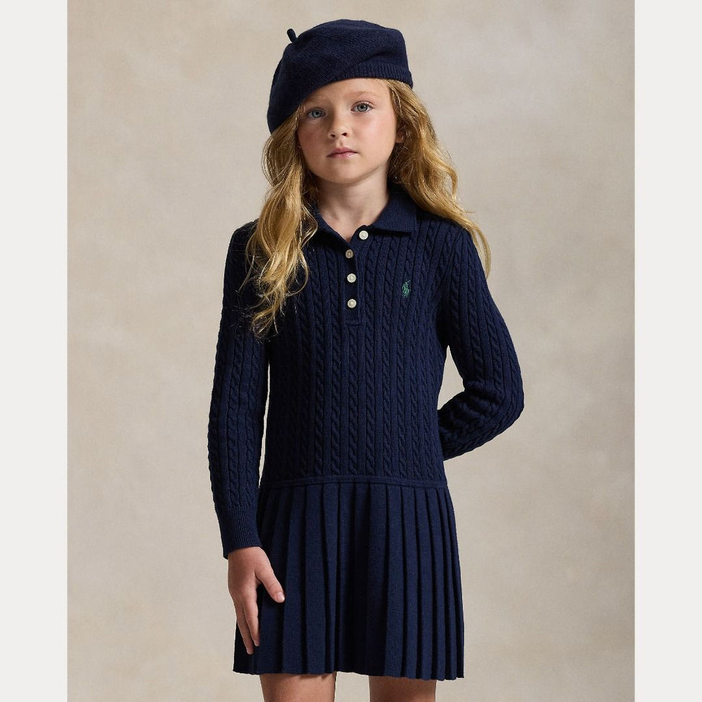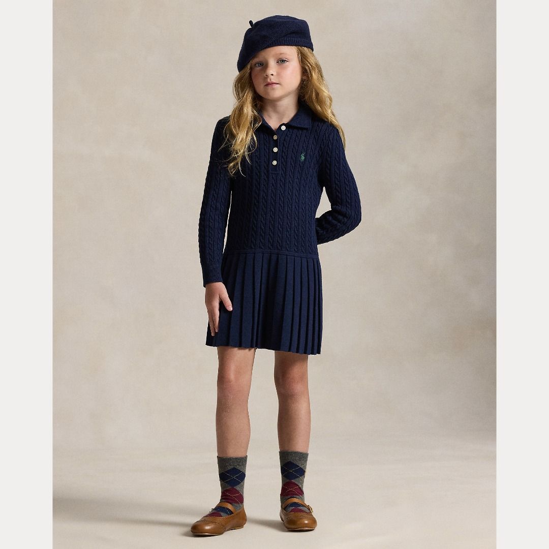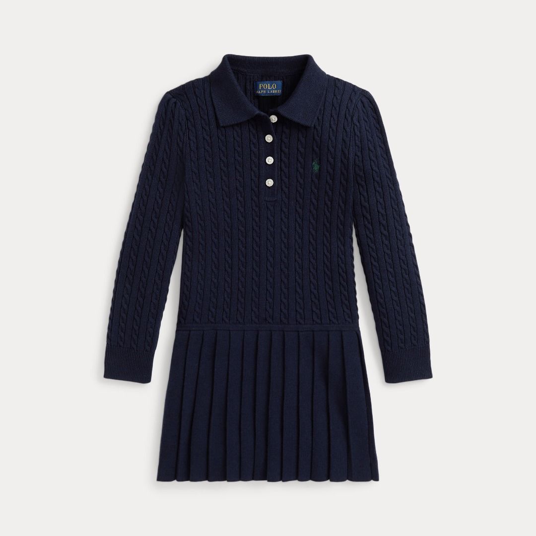 MINI-CABLE POLO SWEATER DRESS CRUISE NAVY