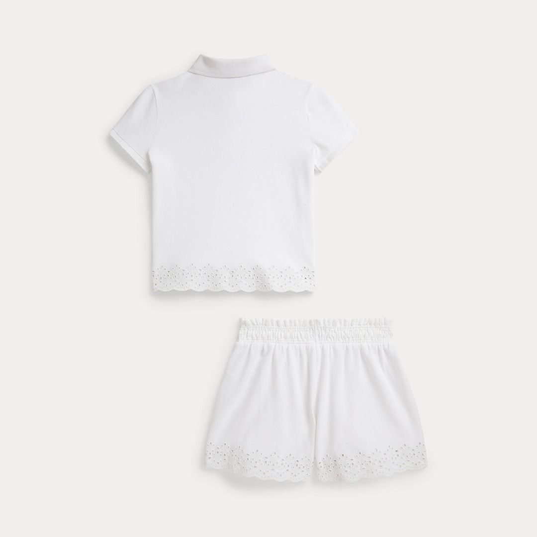POLO A RETE ELASTICIZZATA A PUNTELLI E PANTALONCINI BIANCO