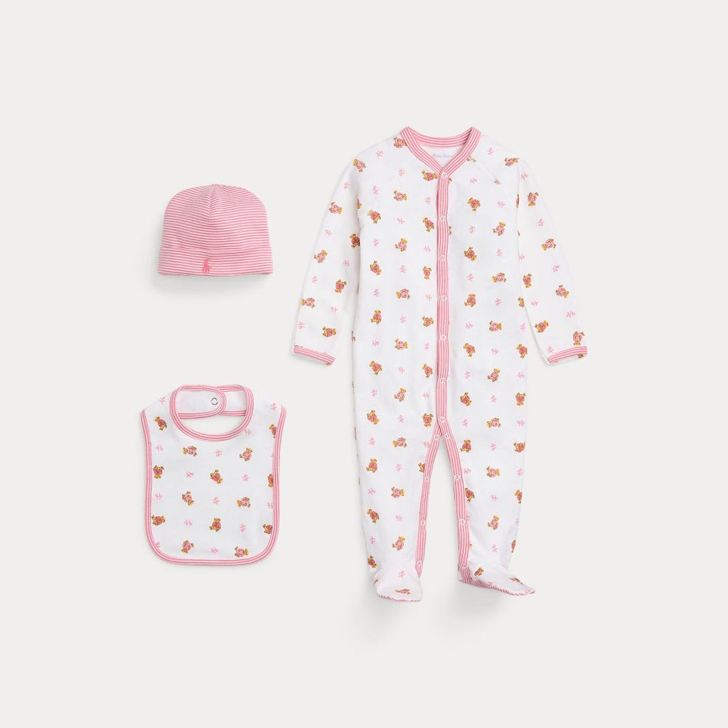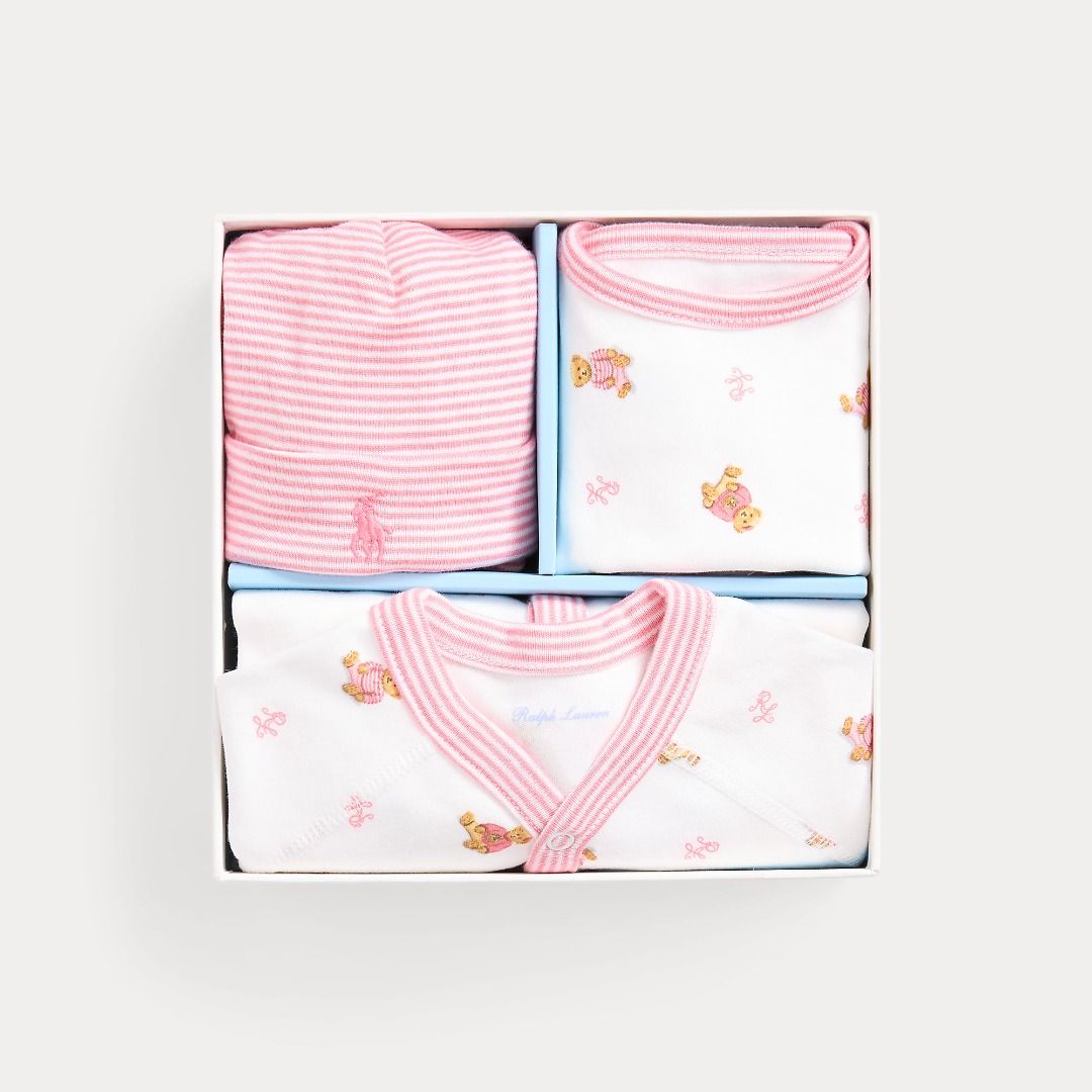 POLO BEAR COTTON 3-PIECE GIFT SET WHITE MULTI/PINK BIND