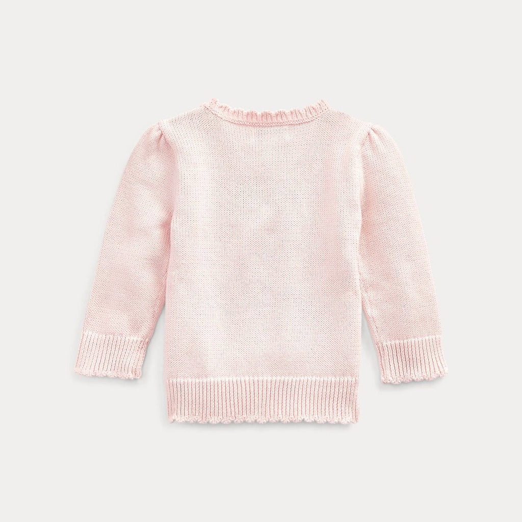 Realizzato in maglia con graziosi bordi smerlati, questo maglione in cotone presenta l'orso Polo vestito con l'iconico maglione a bandiera di Ralph Lauren.