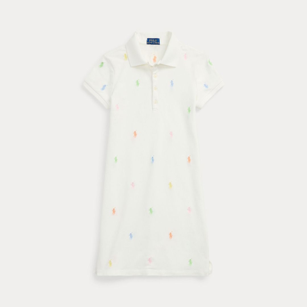 Realizzato in rete di cotone elasticizzato traspirante, questo abito polo presenta il motivo del nostro caratteristico pony ricamato in graziose tonalità pastello.