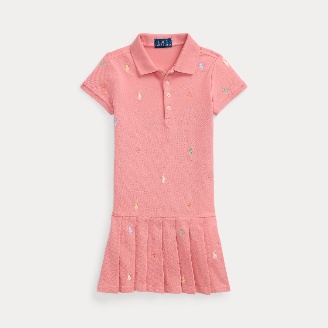 Realizzato in rete di cotone elasticizzato traspirante, questo abito polo è caratterizzato da una gonna a pieghe e da un motivo giocoso del nostro caratteristico pony ricamato.