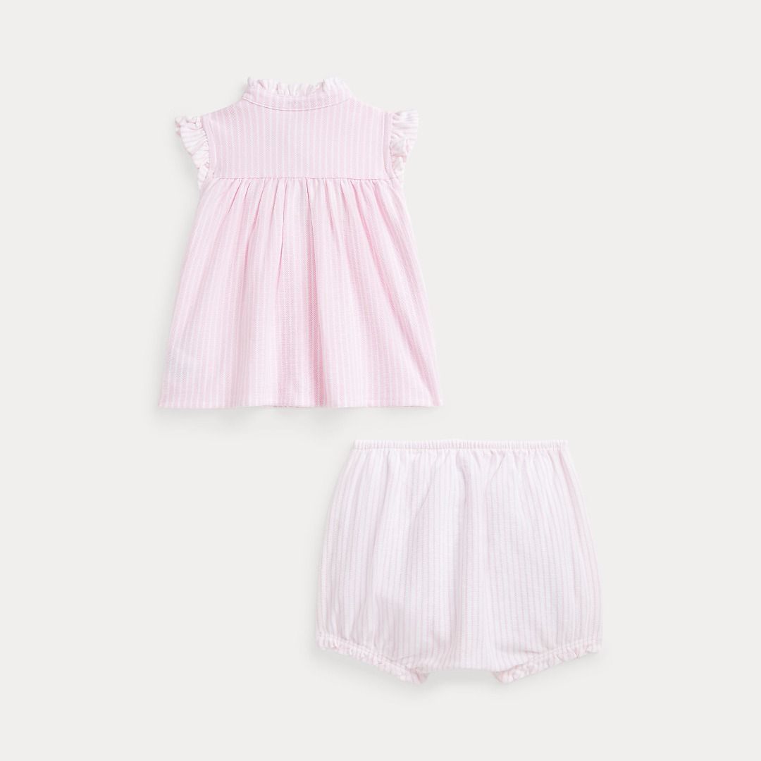 TOP OXFORD A RIGHE E BLOOMER SET rosa