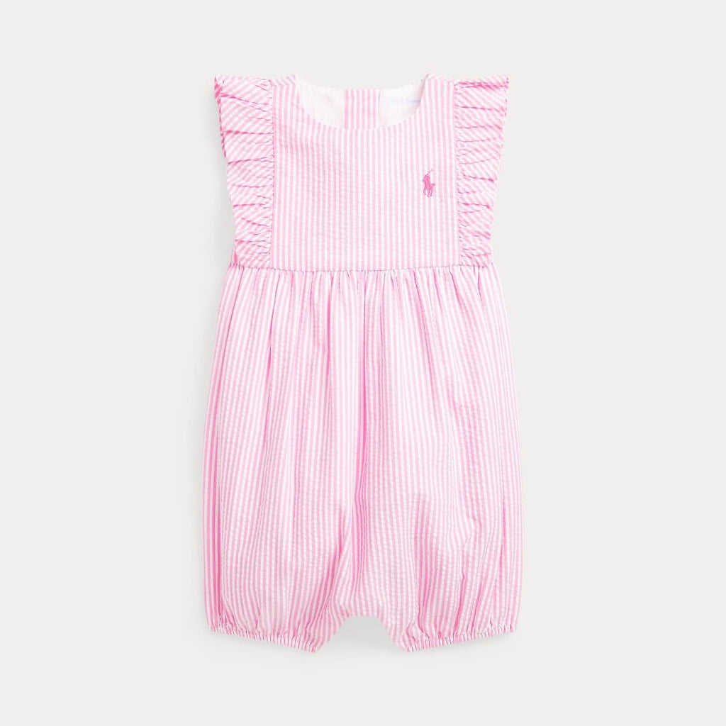 STRIPED SEERSUCKER BUBBLE SHORTALL LAGUNA PINK/WHITE