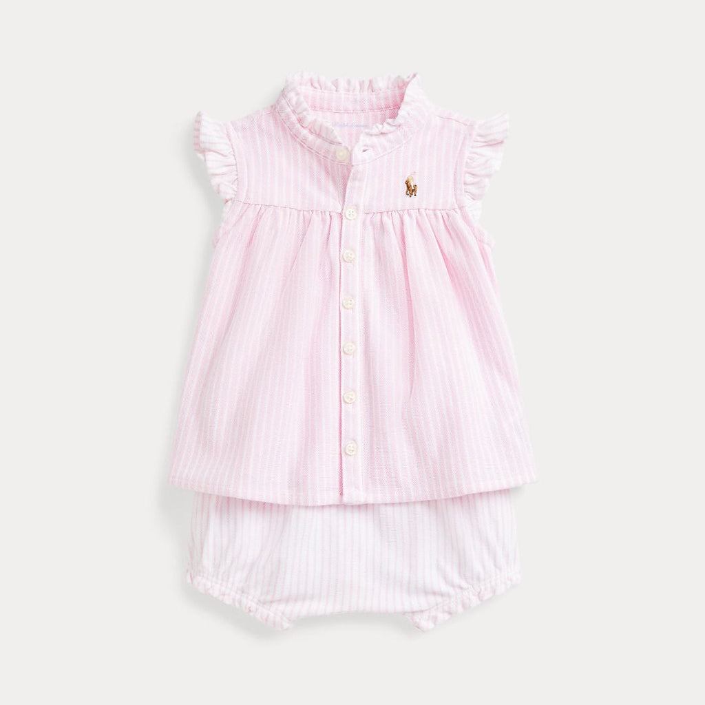 TOP OXFORD A RIGHE E BLOOMER SET rosa