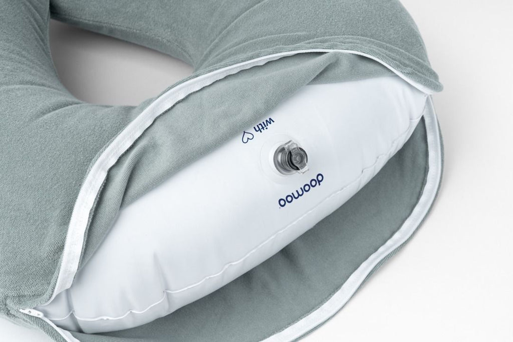 Questo piccolo cuscino multifunzionale è ideale per l'allattamento al seno e al biberon e per mettere il bambino in posizione eretta. Ultra leggero e compatto, può essere portato ovunque nella sua borsa e gonfiato in pochi secondi. Morbido e compatto, questo cuscino offre un sostegno costante, mentre il suo rivestimento in spugna biologica garantisce comfort e morbidezza.La fermezza desiderata può essere regolata gonfiando o sgonfiando ulteriormente il cuscino.