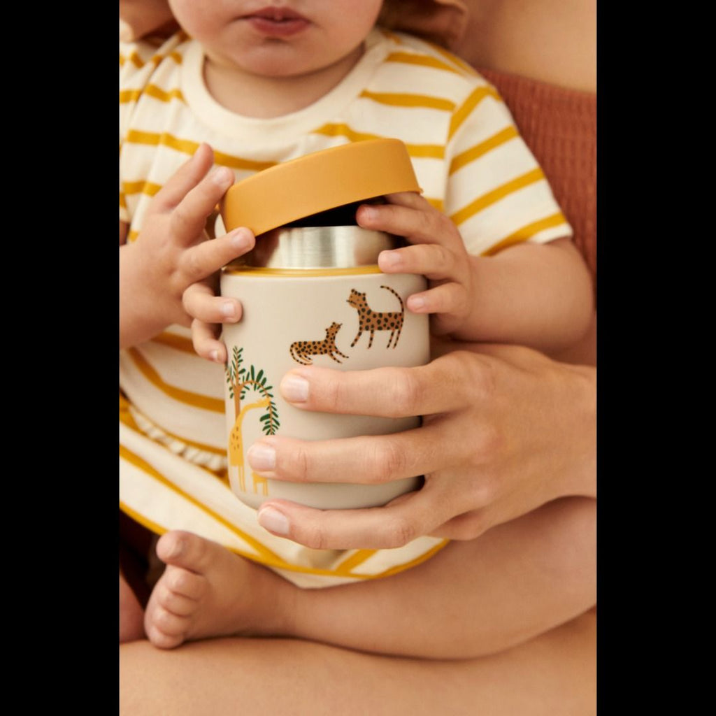 Per tutte le avventure all'aria aperta e le spedizioni quotidiane, il barattolo per alimenti Kian è ideale per il porridge o gli spuntini in movimento. Simile al barattolo per alimenti Nadja, Kian viene fornito con un coperchio in stile tazza Jansa e una lama in silicone. Le doppie pareti in acciaio inossidabile lo rendono ideale per portare in viaggio porridge o snack e il coperchio in acciaio a tenuta stagna con moschettone ne consentono il fissaggio alla carrozzina o alla borsa.