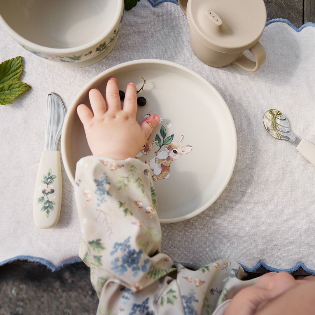 Le ventose intelligenti consentono alla ciotola e al piatto di aderire a qualsiasi superficie piana e aiutano ad iniziare a mangiare da soli più facilmente.