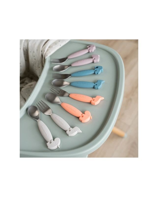 Le graziosissime Posate Antiscivolo in acciaio inossidabile del set Done By Deer sono pensate per rendere più facili e divertenti i primi pasti del tuo bambino. Grazie ad un manico antiscivolo in silicone alimentare sono facili da afferrare anche dalle manine dei più piccoli e non scappano via durante la pappa! L'estremità del manico ha una simpatica forma ad animaletto che tanto piacerà al tuo piccolo: Elphee l'elefante, Ozzo l'ippopotamo e Nozo il rinoceronte gli terranno compagnia ad ogni pasto! Il set posate Done By Deer comprende una forchetta, un coltello e un cucchiaio: tutto il necessario per mangiare con stile e allegria.