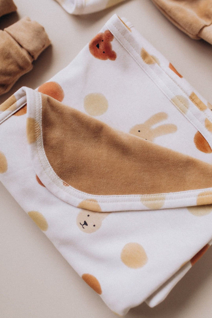 VELOUR BLANKET - GOTS - NOOS - LIGHT BROWN/BIG MULTICOLOR DOTS