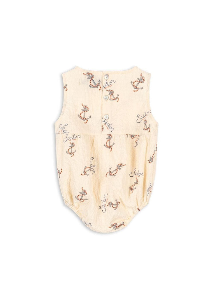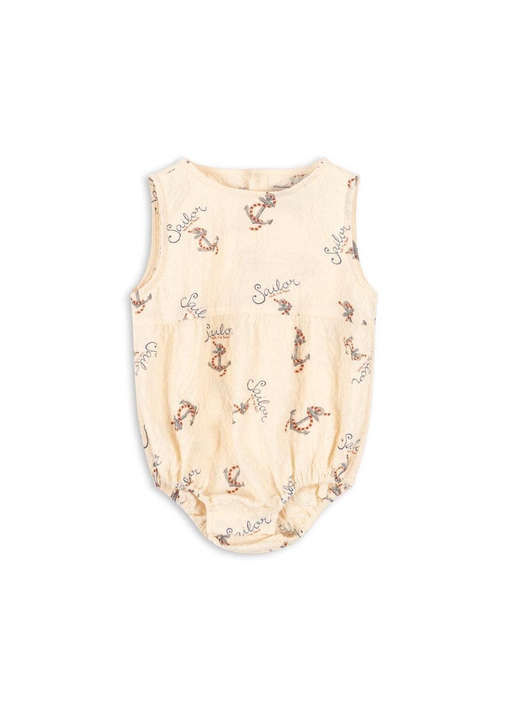 Tutina realizzata in morbido tessuto seersucker. Design pratico con bottoni a pressione sulle aperture delle gambe che facilitano la vestizione del tuo bambino. Materiali: 98% cotone biologico, 2% elastan GOTS, Biologico, certificato da CU1094701
